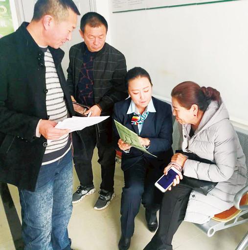 李媛媛在巴彥街營業(yè)所為客戶介紹業(yè)務(wù)