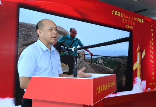 謝堅在廣東省慶祝改革開放40周年宣講報告會珠海專場上發言,他身后的大屏幕播放的是他30年來堅守海島的感人瞬間