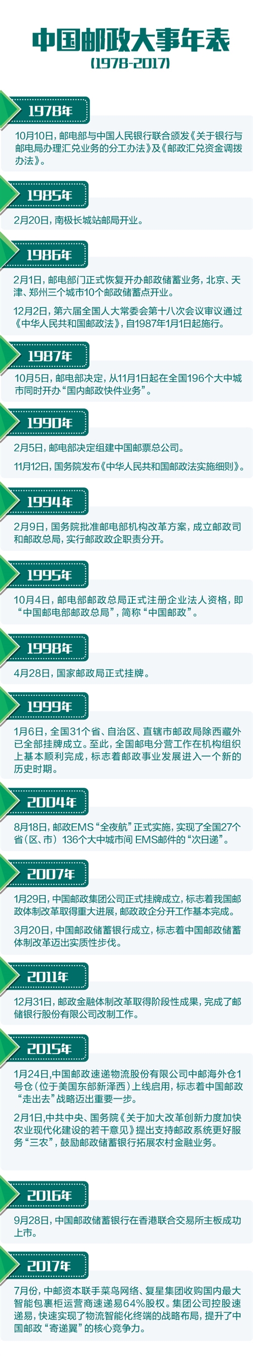 自1896年至今,中國郵政事業已走過120多年的風雨歷程。在這漫漫征途中,中國郵政集團公司始終緊扣新發展理念,通過改革創新實現轉型升級,并發展成為業務范圍覆蓋傳統郵政、金融、包裹快遞、電子商務等領域的現代化企業集團。