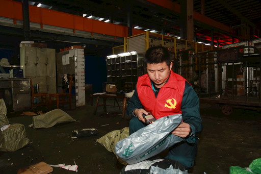 剛剛過去不久的這個“雙11”,王昊平均一天要彎腰400次以上,蹲在地上為那些破損郵件的“傷口”重新“包扎”,有時遇到水濕郵件,還要先對郵件進行“止血”處理,再“包扎傷口”,一晚上下來,要用掉50卷透明膠帶、100個紙箱以及150條編織袋。此外,他每天還要對近400件問題郵件進行補打標簽、改地址信息等操作,使這些問題郵件得以重新獲得“身份標簽”。