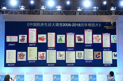 在啟動儀式現場,主持人與大家一同回顧了“中國經濟生活大調查”歷年明信片、信卡;現場播放的短片,講述了郵遞員是如何將明信片、信卡送到老百姓手上,又是如何進行問卷調查的。