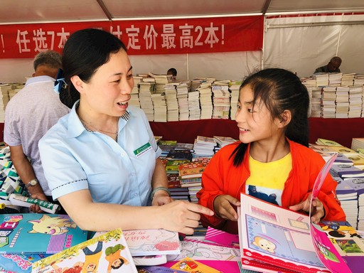 4月19日,在世界讀書日即將來臨之際,云南省紅河哈尼族彝族自治州建水縣郵政分公司聯合縣文明辦等單位舉辦的“全民閱讀 書香建水”大型圖書活動啟動。活動濃郁的書香氛圍受到市民的歡迎,為建水縣精神文明建設貢獻一份力。圖為建水縣朝陽北路營業所營業員為兒童講解圖書內容。□趙祝甜 攝影報道