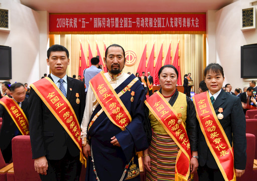 2019年4月23日,慶?!拔逡弧眹?guó)際勞動(dòng)節(jié)暨全國(guó)五一勞動(dòng)獎(jiǎng)和全國(guó)工人先鋒號(hào)表彰大會(huì)在京召開(kāi)。郵政系統(tǒng)7人獲全國(guó)五一勞動(dòng)獎(jiǎng)?wù)隆?單位獲全國(guó)工人先鋒號(hào),其美多吉、柴閃閃、益西卓嘎、韋艷梅作為代表,受邀進(jìn)京參加表彰大會(huì)。