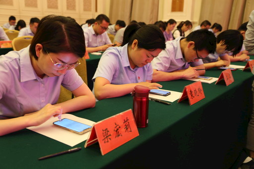 近日,郵儲銀行安徽省分行黨委舉辦了黨務干部培訓班。在培訓現場,100余名學員都在格外認真地低頭擺弄手機。湊近一看,原來是學員們正通過“中郵先鋒”APP進行黨建應知應會知識線上考試。