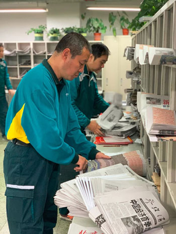 東四郵局北新橋投遞部已經(jīng)分好的報(bào)紙(央廣記者 馮會玲攝)