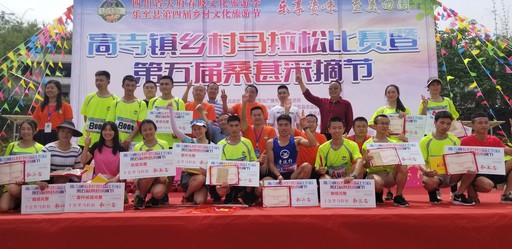 四川省樂至縣高寺鎮(zhèn)桑葚采摘節(jié)活動(dòng)中“鄉(xiāng)村馬拉松比賽”獲獎(jiǎng)?wù)吆嫌啊Zw彥成 攝
