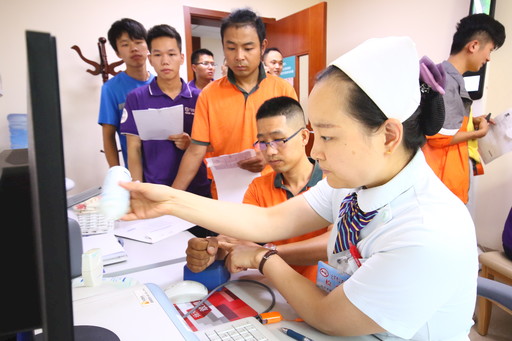 7月14日,北京市朝陽區雙井郵政支局的投遞員鞏學藝等30位工作在北京郵政投遞一線的“快遞小哥”,來到北京康復醫院,參加2019年“關心關愛快遞員”免費健康體檢。