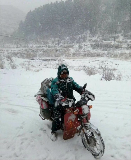 10多年前的孟山鄉,條件十分艱苦,環境十分惡劣。那時的孟山鄉一帶鮮有橋梁,每次暴雨時節,郭成明為了不讓用戶的郵件受到損失,每次過河前都將郵件用塑料包好,冒著大雨往返河流15次,將郵件完好無損地交到收件人手中。雖說每次都是有驚無險,但長途的跋涉“危險”也常伴左右,記得那是2010年冬天的一個傍晚,天色漸暗,他送完最后一個郵件想趁著天還沒有全黑趕回家中,可就在出村不遠的一條羊腸小道上,前方突然出現大片暗冰。他急踩剎車后,摩托車朝著路邊深溝沖了過去。他急忙握緊車把調轉方向,卻又撞向了路邊的山崖,重重地將他摔在了地上。這一次的經歷造成了郭成明腿部靜脈曲張、腰椎間盤突出的傷痛,可他仍然堅持在這條郵路上跋涉,從來沒有抱怨過。
