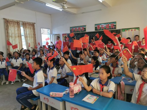 國慶前夕,廣東省深圳市郵政分公司義工隊組織15名志愿者,赴省定貧困村東源縣船塘鎮凹頭村,開展了“不忘初心 與愛同行”志愿活動,與船塘第一小學的同學們共迎國慶。