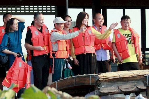 鮮紅的旗幟在湖區(qū)飄揚(yáng)