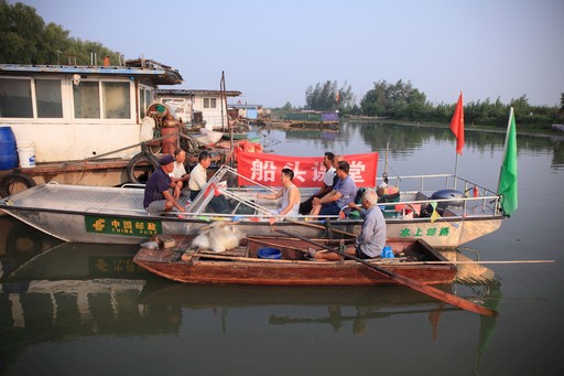 江蘇省淮安市洪澤區(qū)老子山鎮(zhèn)三面環(huán)水,300平方公里面積90%為灘涂水面。全鎮(zhèn)1.8萬(wàn)居民中,六成左右是散居湖蕩灘頭、從事?lián)撇痘蝠B(yǎng)殖的漁民。簍,用繩子拴在腰上;娃,用繩子拴在船上;船,用繩子拴在岸上……漁民們常年過(guò)著“船底無(wú)刮子”的漂泊生活,內(nèi)心都渴望一處溫暖的港灣,危難時(shí)可以依靠,需要時(shí)獲得幫助。他們因此習(xí)慣在船上掛一面國(guó)旗,作為湖上生活的精神寄托以及四季平安的護(hù)身符。“他是黨派來(lái)的人。”在漁民們心中,唐真亞也是湖區(qū)的一面旗幟。