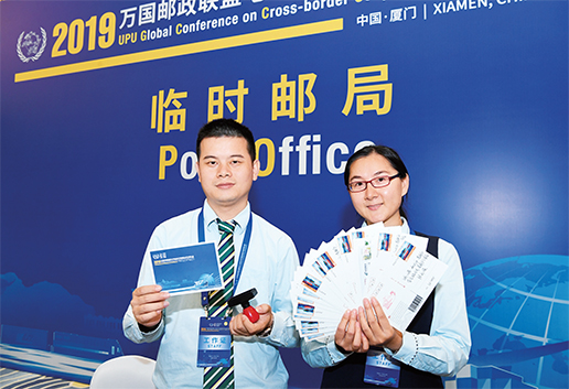 廈門市郵政分公司在會場外設置臨時郵局,為與會嘉賓提供郵件收寄服務、明信片領取及蓋戳服務、個性化郵票定制服務、聲音郵局互動服務,同時展示了郵政無人機和無人投遞車。來自郵政和廈門高校的170余名志愿者協助提供簽到、指引、物料準備等服務。