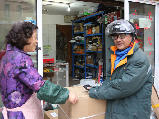 “小陳啊,你又過來啦,這次有幾件貨啊?”“11件,老板,你簽收一下,客戶那邊我也會通知他們的。”下午5點左右,陳磊騎車來到了勝豐小區的一個包裹自提點,花了5分鐘時間和自提點的經營者進行了交接,他又趕赴下個站點。今年以來,寧波市分公司加大了包裹自提點的建設力度,陳磊負責的區域就增加了2個站點,加上智能包裹柜的應用,為他的投遞工作帶來了很大的便利。“往年我一天投送600多件包裹是想也不敢想的事,現在有了代投自提點方便多了,客戶也對這種取件方式表示認可。”