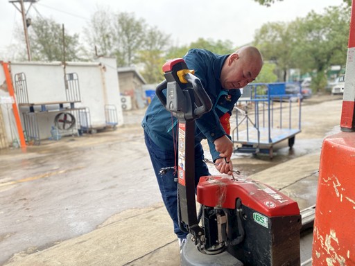 “老陳,你看下,這個叉車能不能修好?”“我瞅瞅……沒問題,放這兒吧!”