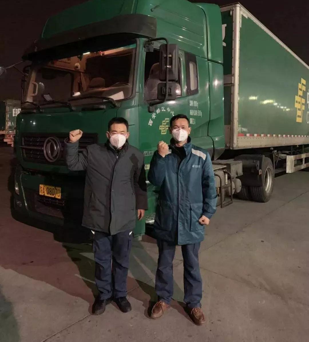 初一當天,西安市郵政分公司收寄當地某科技有限公司發往全國各地的新型冠狀病毒檢測器械、設備26箱,其中發往武漢9箱,其他省份17箱。接到這一任務后,郵運駕駛員們更是毫不退縮,紛紛主動請纓,最終由陜西省勞模張忠海、明星員工喬毅軍兩位黨員同志承擔了此次運輸任務。