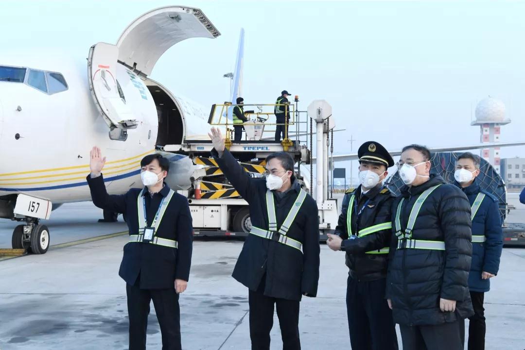 1月31日清晨,國(guó)家郵政局黨組書記、局長(zhǎng)馬軍勝,中國(guó)郵政集團(tuán)有限公司黨組書記、董事長(zhǎng)劉愛力一行,來到北京首都機(jī)場(chǎng)郵航飛機(jī)停機(jī)位,看望慰問即將執(zhí)飛北京至武漢防疫救援物資專機(jī)的飛行機(jī)組和保障人員,向他們致以新春?jiǎn)柡颍瑢?duì)他們執(zhí)飛專機(jī)運(yùn)輸防疫物資表示衷心感謝,希望他們切實(shí)做好自身防護(hù),安全執(zhí)飛專機(jī),繼續(xù)為助力打贏疫情防控阻擊戰(zhàn)作出積極貢獻(xiàn),切實(shí)做到使命必達(dá),讓黨和人民放心,充分彰顯行業(yè)“國(guó)家隊(duì)”的使命擔(dān)當(dāng)。