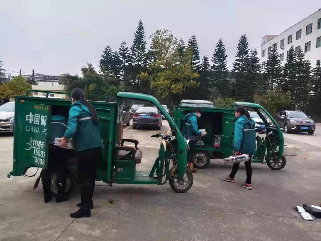 大年初三,剛接收完郵件,馬國江接到羅平一中李老師的電話,李老師在電話里焦急地詢問他的包裹到了沒有,到了請投遞員務(wù)必盡快送到他家。原來,在春節(jié)前,李老師在羅平到處買口罩,跑遍了全城的藥店都沒有買到,最后聯(lián)系到了外地的朋友,朋友為他郵寄了一些口罩和防護用品過來。在剛接收到的包裹中,馬國江找到了李老師的包裹,立即送到李老師家中,就發(fā)生了上述的一幕。