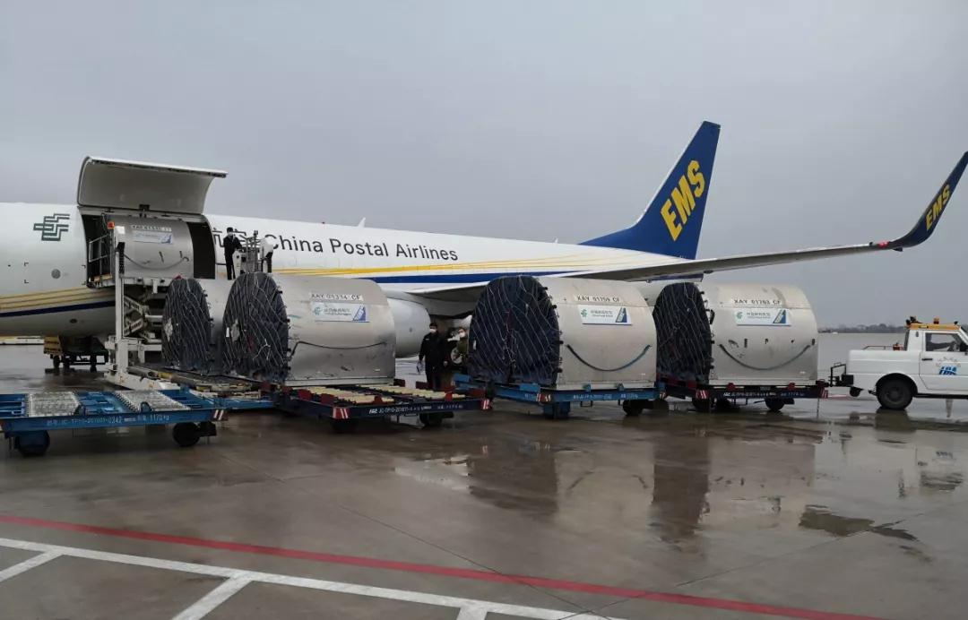 至今,郵政航空在打贏防控疫情阻擊戰中,累計執行運輸醫療物資專機12架次,中國郵政空中綠色通道累計運輸防疫醫療物資140.45噸。