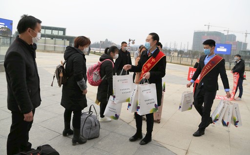 2月20日,“畢海同心、雙戰(zhàn)雙贏”貴州畢節(jié)至浙江海寧務(wù)工人員返程專(zhuān)列歡送儀式在畢節(jié)市舉行。郵儲(chǔ)銀行畢節(jié)市分行、畢節(jié)市人力資源和社會(huì)保障局、畢節(jié)市郵政分公司聯(lián)手為每一位務(wù)工人員準(zhǔn)備了一份含口罩、方便面、八寶粥等物資的防疫“郵愛(ài)禮包”,共計(jì)600余個(gè)。