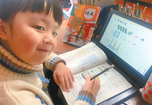 萬州區(qū)電報(bào)路小學(xué)的“學(xué)霸”楊清如小朋友收到教材后,在電腦的輔助下預(yù)習(xí)新課,開心極了。李璐君 攝