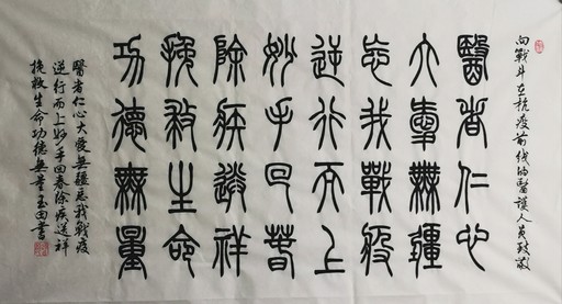 郵友們都知道,蕭老師不僅畫畫得好,字也寫得特別棒,楷、行、草、隸、篆及金文無(wú)所不能。2014年發(fā)行的《元曲》特種郵票,6枚郵票上面出現(xiàn)的代表性名句,均是蕭老師自己用6種書體寫就。這次蕭老師運(yùn)用篆體寫下的抗疫書法作品,第一幅內(nèi)容為“眾志成城,抗擊疫情。山河無(wú)恙,百姓康寧”;第二幅為“萬(wàn)眾一心,共克時(shí)艱,抗擊疫情,國(guó)泰民安”;第三幅為“醫(yī)者仁心,大愛(ài)無(wú)疆。忘我戰(zhàn)‘疫’,逆行而上。妙手回春,除疾送祥。挽救生命,功德無(wú)量”,上款為“向戰(zhàn)斗在抗疫前線的醫(yī)護(hù)人員致敬!”可謂字字見(jiàn)功力,幅幅寄深情。