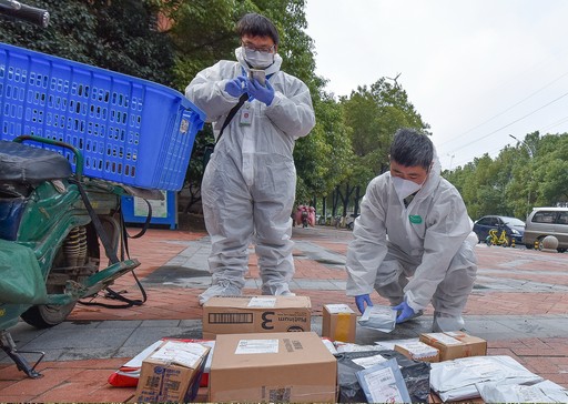 4月1日9點,湖北省武漢市江漢區(qū)遠洋朗院小區(qū)門前,一名宅急送投遞員將一件包裹交到湖北省郵政分公司幫扶社區(qū)的黨員志愿者易繼全手中后,就繼續(xù)自己的投遞工作了。接下來,易繼全會聯(lián)系收件人,約定領(lǐng)取時間和領(lǐng)取地點。