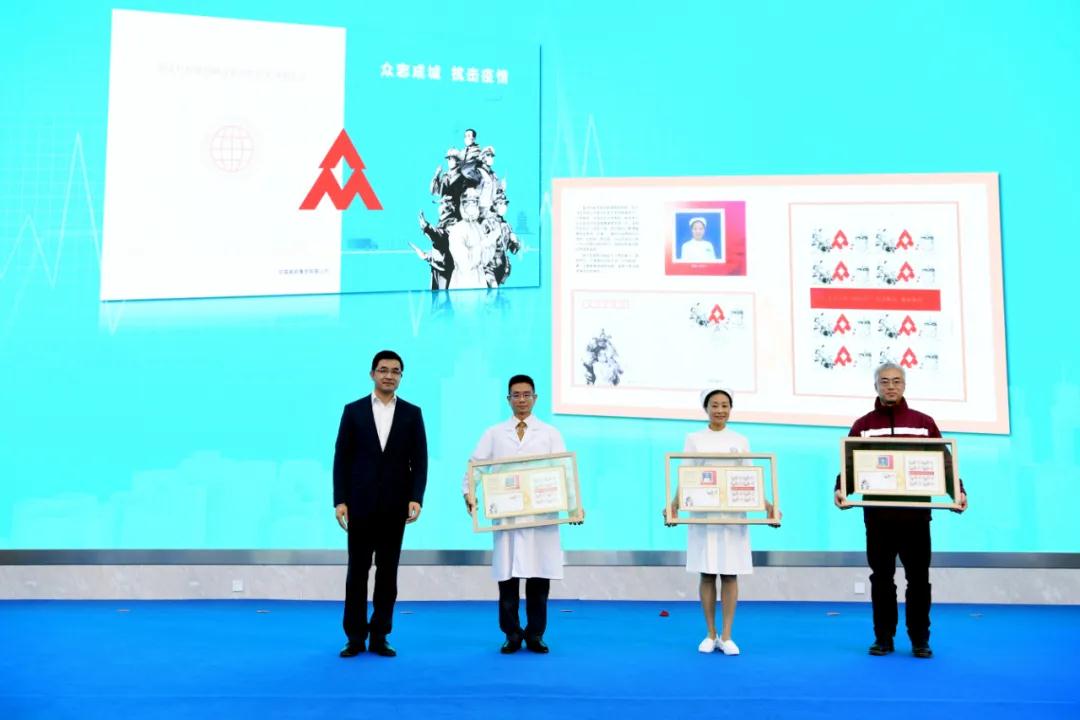 張金良向三名抗擊疫情醫(yī)務(wù)工作者代表捐贈(zèng)郵折