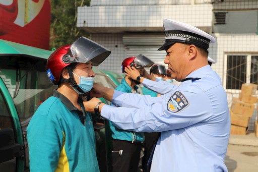 5月15日,山西省陽泉市交警二大隊聯(lián)合山西省陽泉市郵政分公司共同開展 “警企合作共建文明交通,‘一盔一帶’守護安全出行 ”勸導(dǎo)快遞騎手佩戴安全頭盔活動。該大隊長賈勇慧將10個安全頭盔贈給該分公司投遞人員,倡導(dǎo)投遞員駕車系好安全帶,駕乘摩托車、電動車戴好安全頭盔等,做到安全駕駛、生命第一。 □劉靜雅 攝影報道