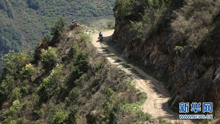 桑南才騎行在高山峽谷間(5月10)。新華網 趙普凡 攝