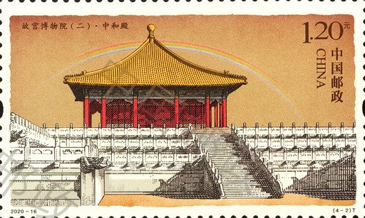 紫禁城建造技藝高超,內(nèi)在考究精妙,外在磅礴大氣,代表著當(dāng)時最高的建造水平。中央軸線上分布著三大殿(太和殿、中和殿以及保和殿)和后三宮(乾清宮、交泰殿以及坤寧宮),左右兩條次軸線上分別分布著慈壽宮、寧壽宮等宮殿。出于防御需要,宮殿建筑外圍筑有宮墻,四周分布有角樓,外有護(hù)城河環(huán)繞。故宮平面示意圖首次登上郵票,細(xì)膩、完整地呈現(xiàn)了故宮恢弘的建筑布局。