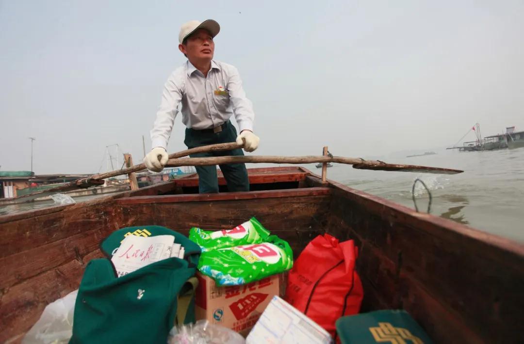 古銅色的皮膚讓唐真亞和漁民別無二致。常年在水上投遞,風(fēng)里來雨里去,這種生活對唐真亞來說已經(jīng)稀松平常。