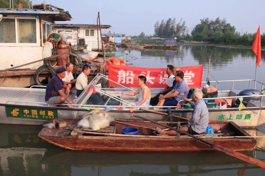 作為一名老黨員,唐真亞在湖區(qū)送信、送包裹的時候,見到哪里人多,就會主動靠過去,和大家集中在一條大的船上,坐在船頭,圍成一圈,與漁民們拉拉家常,通過“船頭課堂”的形式宣傳黨的政策,傳遞黨的聲音。