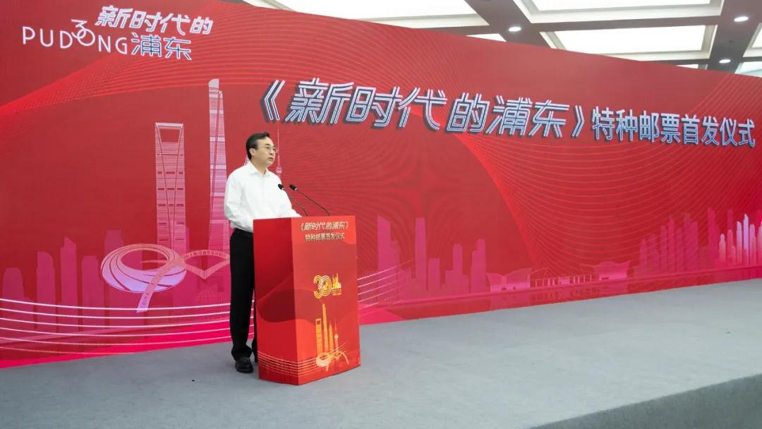 7月20日,《新時(shí)代的浦東》特種郵票首發(fā)儀式在上海舉行,方寸間展示浦東開發(fā)開放30年取得的輝煌發(fā)展成就。上海市委副書記、代市長龔正為特種郵票揭幕。國家郵政局黨組書記、局長馬軍勝,中國郵政集團(tuán)有限公司黨組書記、董事長劉愛力,上海市委常委、浦東新區(qū)區(qū)委書記翁祖亮分別致辭。上海市委常委、宣傳部部長周慧琳主持儀式。上海市副市長湯志平,國家郵政局黨組成員、副局長趙民,中國郵政集團(tuán)有限公司副總經(jīng)理康寧出席。康寧向湯志平贈(zèng)送編號(hào)為001號(hào)郵票。