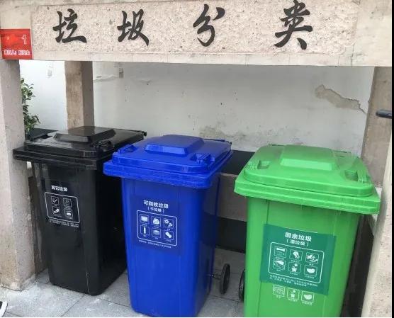除了三色垃圾袋,垃圾桶也有三種顏色,分別對應放置三色塑料袋里的垃圾。村民一目了然,扔垃圾不會成為一種負擔。
