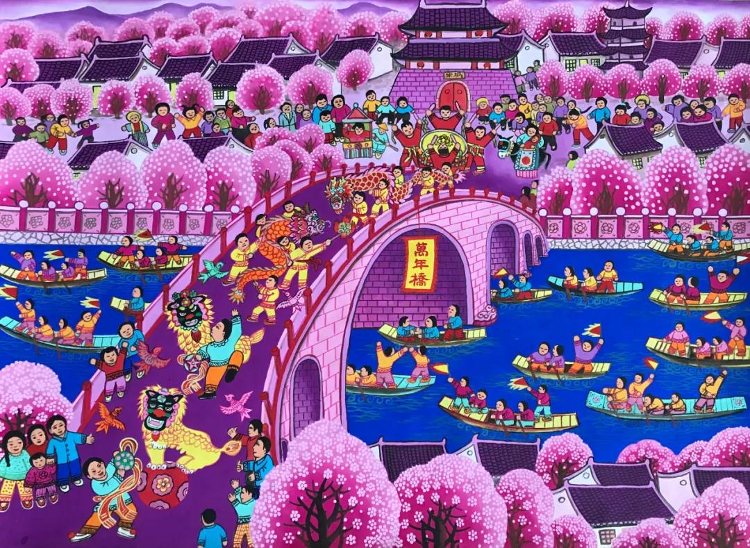 如今,青州農民畫及相關產業從業者達3萬余人,一年能創作出50多萬幅畫作,畫作及衍生品交易額超3億元,中等創作水平的農民畫作者人均年增收2萬元,走出了一條振興鄉村文化與增加農民收入“雙翼齊飛”的路子。