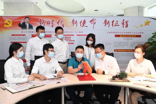 9月9日上午,中國郵政集團有限公司直屬機關青年員工學習習近平總書記在全國抗擊新冠肺炎疫情表彰大會上的重要講話精神座談會召開。作為一名準“90后”,剛剛獲得全國抗擊新冠肺炎疫情先進個人榮譽稱號的湖北省武漢市江岸區(qū)郵政分公司上海路投遞站投遞員徐龍,與集團公司直屬機關青年員工代表進行了深入交流,希望和廣大青年郵政員工一道,繼續(xù)秉持“人民郵政為人民”的初心使命和服務宗旨,立足本職、做好工作,不怕吃苦、不怕受累,善于學習、樂于學習,為企業(yè)、為社會多做貢獻。圖為徐龍向大家展示全國抗擊新冠肺炎疫情先進個人獎章。