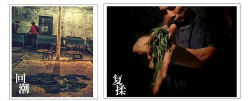 ?去掉青草氣及部分水氣。把握好鍋溫及力度,加壓先重后輕,需時7~10分鐘,使茶坯緊細成條。