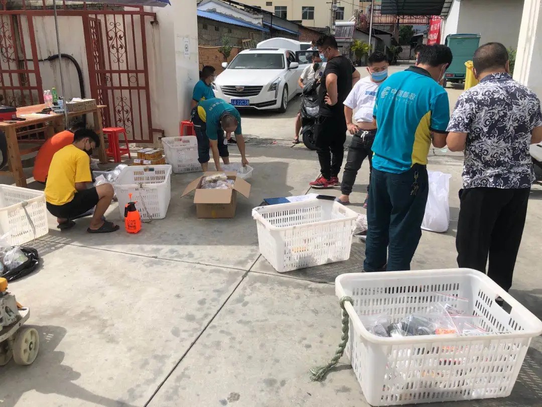 瑞麗市分公司珠寶項(xiàng)目部工作人員按要求在處理中心門口清點(diǎn)郵件并消毒、包裝