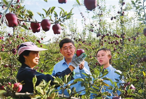 中秋時(shí)節(jié),郵儲(chǔ)銀行甘肅省天水市分行信貸員走進(jìn)天水市麥積區(qū)農(nóng)業(yè)產(chǎn)業(yè)化重點(diǎn)龍頭企業(yè)潘引軍合作社,實(shí)地了解郵儲(chǔ)銀行信貸支持合作社蘋(píng)果種植情況。合作社社員隨手從掛滿果實(shí)的樹(shù)枝上摘下一個(gè)沉甸甸的蘋(píng)果,遞給信貸員看。信貸員望著眼前帶著果香的大蘋(píng)果,脫口而出:“今年這蘋(píng)果,真棒!”