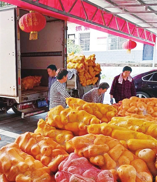 奶油南瓜進入集中采摘期以后,郵政每天都組織人員和車輛專程運輸。