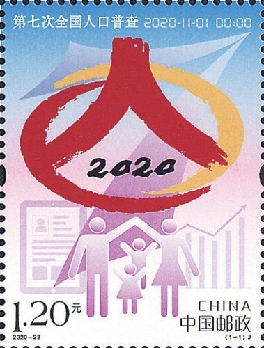 中國郵政定于11月1日發(fā)行《第七次全國人口普查》紀念郵票一套1枚,全套面值1.20元,計劃發(fā)行量為695萬套。
