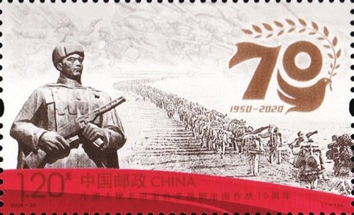 中國(guó)郵政定于10月25日發(fā)行《中國(guó)人民志愿軍抗美援朝出國(guó)作戰(zhàn)70周年》紀(jì)念郵票一套1枚。
