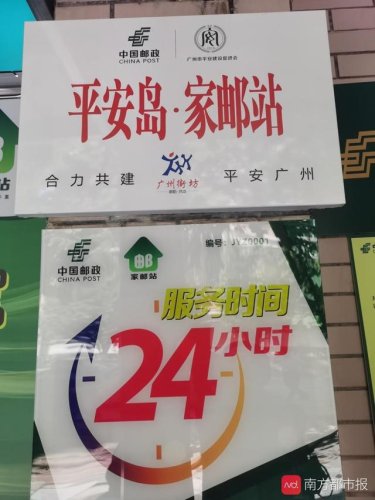 10月27日,廣州市平安建設促進會與中國郵政集團有限公司廣州市分公司在樂意居花苑家郵站簽約共建并揭牌全市第一個“平安島·家郵站”平安社區便民服務點,同時向“廣州街坊·郵政平安建設服務隊”授旗。一個普通的中國郵政服務網點,從此增加了一個新功能——社區“平安島”。