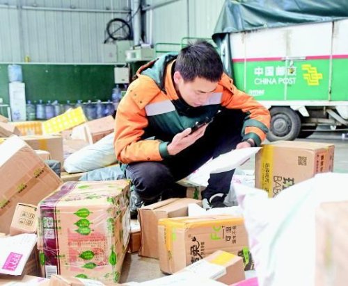 “雙11”期間,多頻次投遞,郵政小哥整裝待發(fā)。韓靜樺 攝