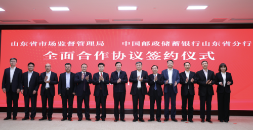 11月20日上午,山東省市場監督管理局與中國郵政儲蓄銀行股份有限公司山東省分行(簡稱“郵儲銀行山東省分行”)簽署全面合作協議。此次簽約是落實山東省人民政府與中國郵政集團公司戰略合作協議,推動放管結合、優化服務,持續激發市場主體活力的重要舉措。