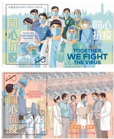 香港郵政15日公布,將于本月29日發行主題為“同心抗疫”的特別郵票及相關郵品,以表揚社會各界的抗疫英雄,并感謝中央政府對香港抗疫工作給予的全力支持。此次發行的郵票小型張共有2款,各嵌有一枚10港元的特別郵票。其中一款描繪一群與香港市民并肩作戰、致力維持緊急服務的抗疫英雄,另一款郵票小型張則以不同場景呈現中央政府對香港的關愛和重視。