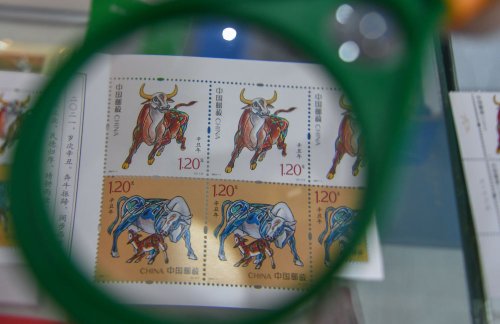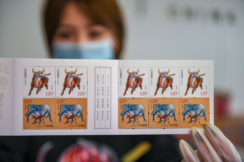 1月5日在長春拍攝的《辛丑年》特種郵票。新華社記者 張楠攝