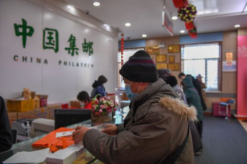 1月5日,在長春郵政站前集郵專賣店,集郵愛好者購買《辛丑年》特種郵票。新華社記者 張楠攝