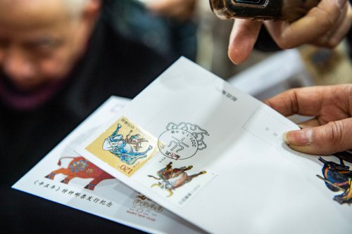 1月5日,在長春郵政站前集郵專賣店,集郵愛好者展示《辛丑年》特種郵票。新華社記者 張楠攝