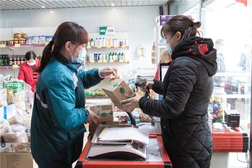 年關將至,便民站里,越來越多的商品擺上展臺,供居民選購。“米面糧油我都買齊了,今天來買點冰糖,回去做紅燒肉。”村民皮開仙左手冰糖,右手糯米,“做完肉,還準備給孫兒做一道八寶甜飯。”